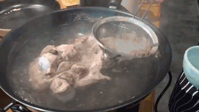 经过上述处理后有些食材还会在炖汤的时候出现一些浮沫。这个时候及时用漏勺(也有专门用于撇浮沫的网勺)等工具将上层浮沫撇出去就可以啦!