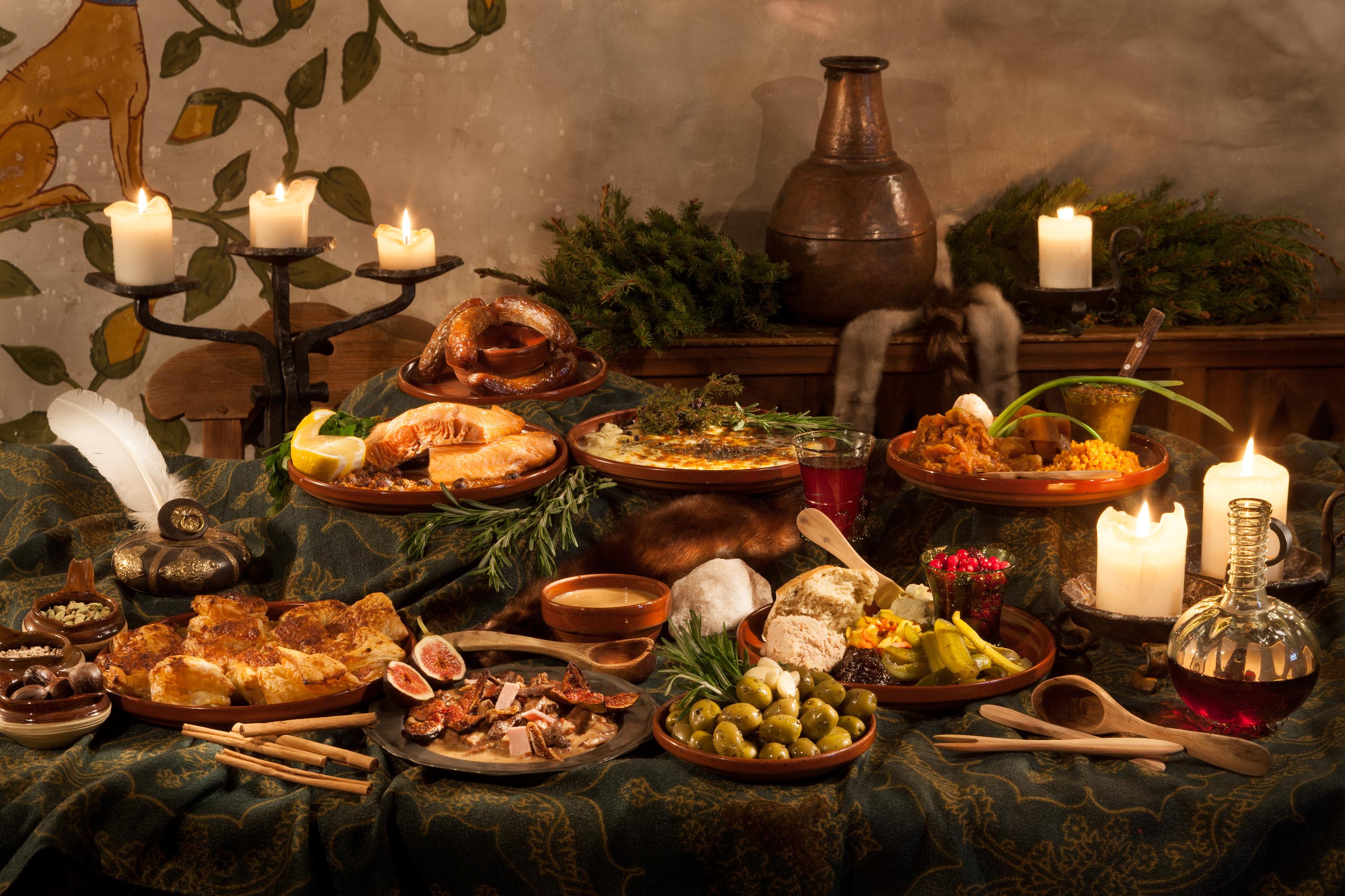 一份遗留下来的中世纪宴会菜单甚至可以组成一个小型的动物园,包括十二只鸽子、十二只鸡、六只兔子、两只苍鹭、一只鹿、一头猪、一只山羊、一条鲟鱼等等。