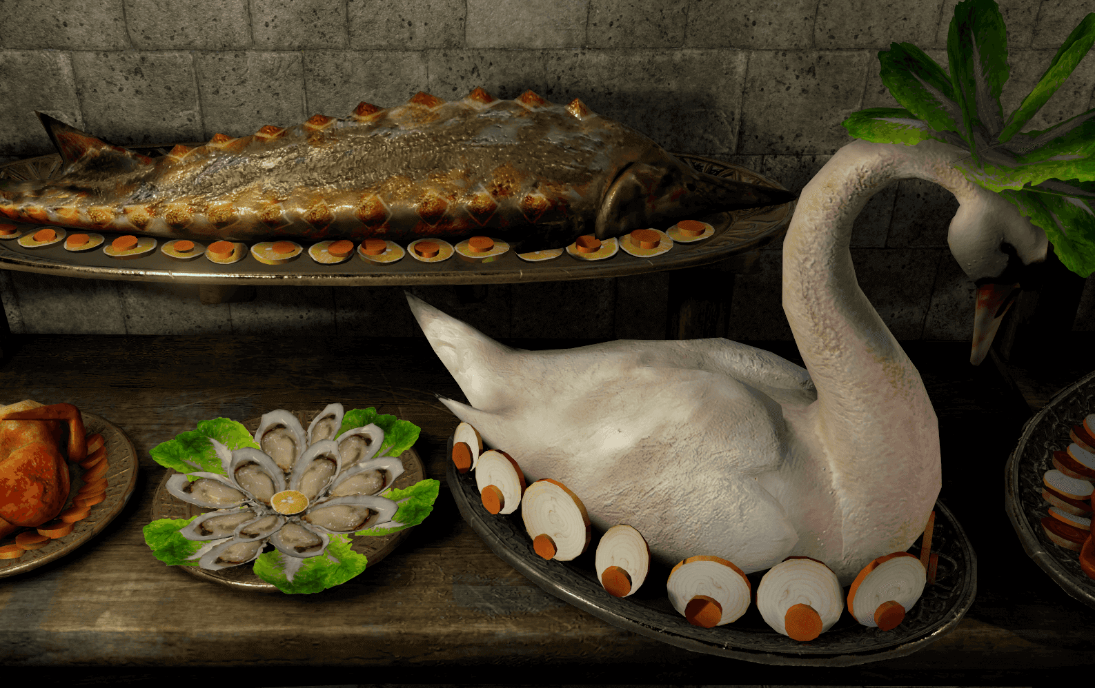 这些食物是用来提醒客人们盛宴即将开始。通常,这些食物会被雕琢成珍稀鸟类、奇异动物、纹章甚至某个名人的样子,另外,可能这些雕塑还会加入诗歌、歌曲、短剧等元素——仪式感满满。