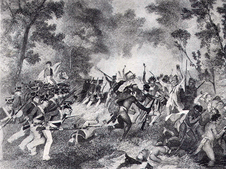 美洲原住民部落与美国之间的冲突以一系列战斗和小规模冲突为标志,多年来双方都没有获得明显的优势。然而,战争的转折点出现在 1794 年的伐木之战 (Fallen Timbers,又称鹿寨战役)中,由 Anthony Wayne 将军率领的美国军队击败了美洲原住民部落联盟。次年签署了《格林维尔条约》,其中几个美洲原住民部落将现在俄亥俄州的大部分土地割让给美国政府。