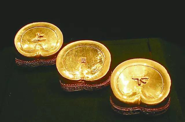 关于金币的形制,从大量出土的黄金陪葬品中可知,西汉的金币主要有马蹄金及麟趾金,呈饼状。