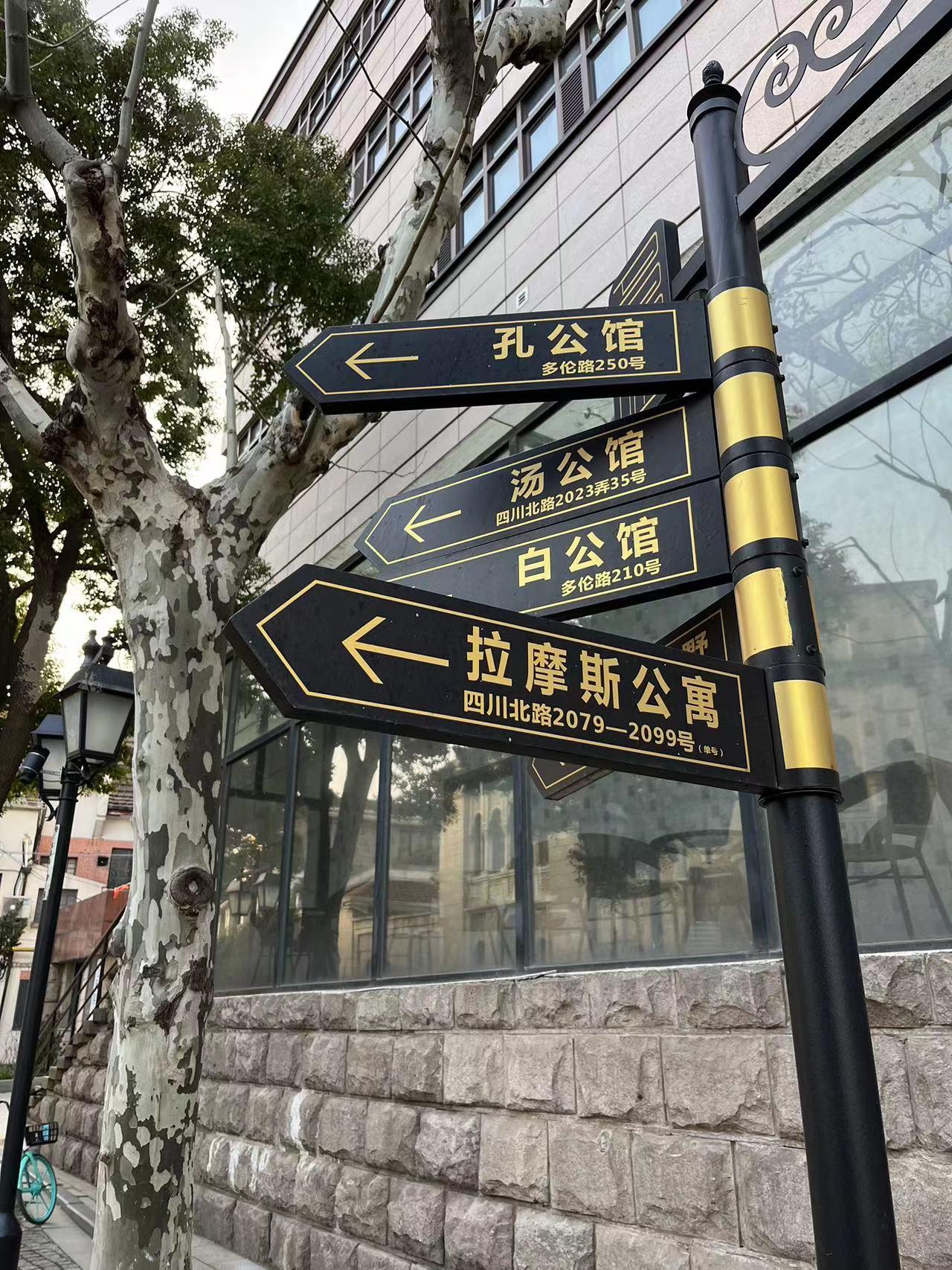 之后在甜爱路爱心形状的红绿灯和满是爱情 相遇 到此一游 一夜暴富的爱情路上看着情诗爱意和别人的幸福一路向南,回到四川北路,过马路向西经过拉摩斯公寓,从孔公馆在回到多伦路,路总长500多米,东北两端都和四川北路相接,看到的孔公馆是孔祥熙的寓所,建筑十分华丽,这里也因很多文学家常在此举办文学活动,铸就了现代文学重镇的地位。