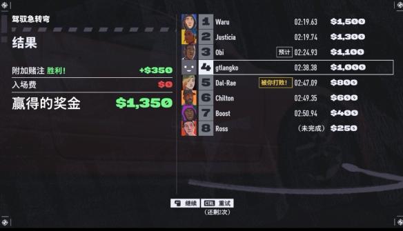 所以刚开始试玩,看着“漂移赛”奖金极高就兴冲冲接受比赛的我,在同事的全程注目下硬是手软没飘几次,在十分折磨羞愧的情况下以最后一名的亮眼战绩完成了比赛。