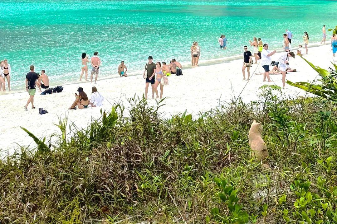 一般皮皮岛一日团的行程会安排大小皮皮岛+蛋岛(Khai Island)/蜜月岛(Maiton private island)的组合。蛋岛由3个小岛组成,在这可以浮潜,能看到不少漂亮的热带鱼从眼前游过。而且最重要的是岛上面养了很多猫,隔着屏幕我都想猛吸一口!
