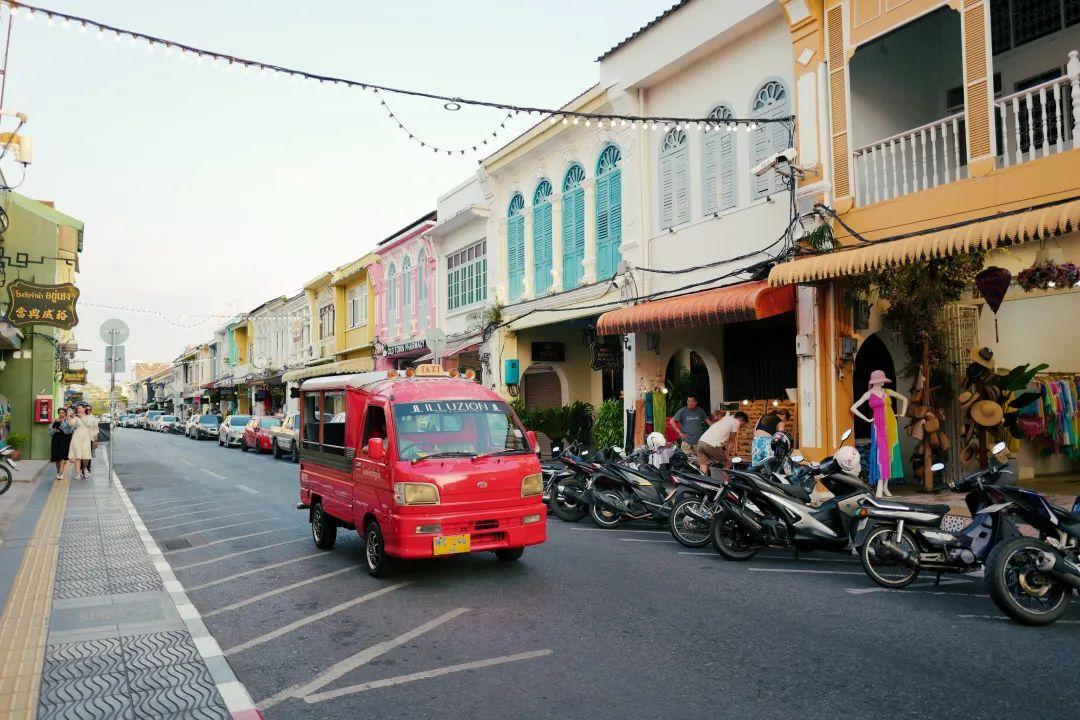 在普吉岛的路边一般可以看到tutu车(红色)、双条车(粉色、蓝色两种)和出租车三种。