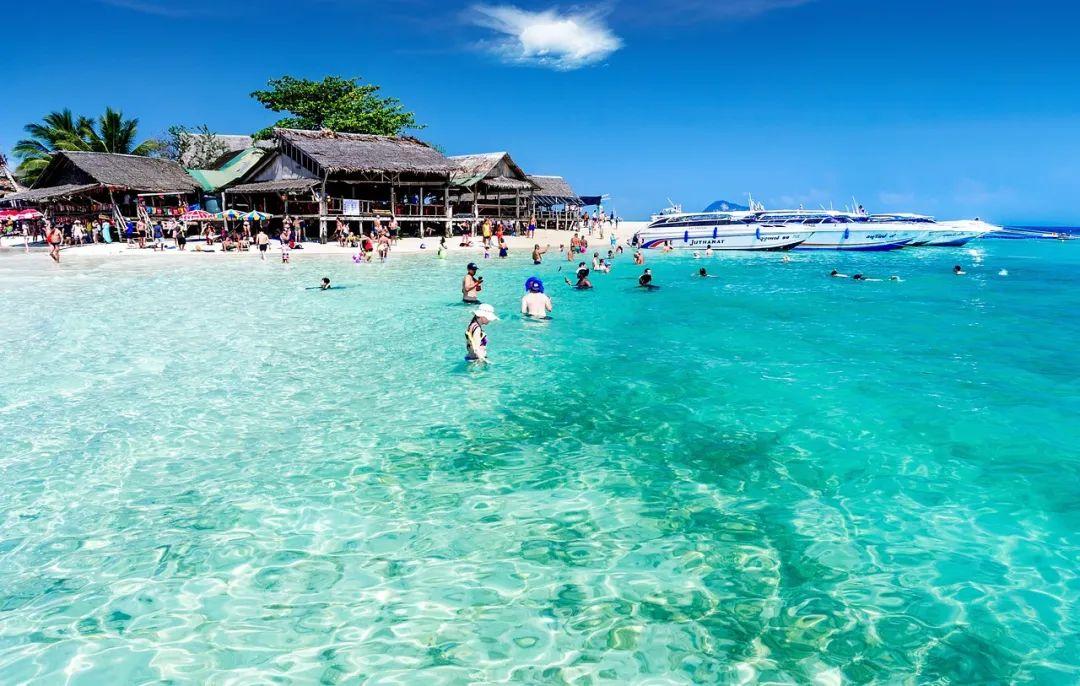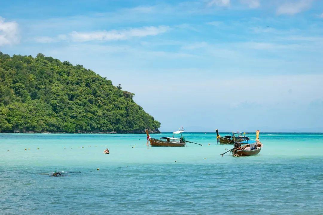 这里海水是渐变的蓝绿色,沙滩质量和水质都很在线,从普吉岛出发登岛,坐快艇的话,大约40分钟。
