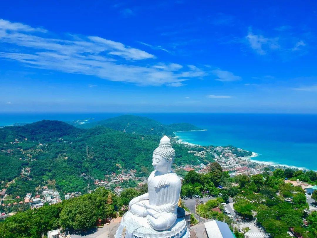 普吉大佛位于查龙湾附近的山顶上,是普吉的最高处,同时这里也是一个绝佳的观景平台。在这可以全方位地将普吉岛的风光尽收眼底,还能看到远处海天一线的安达曼海。