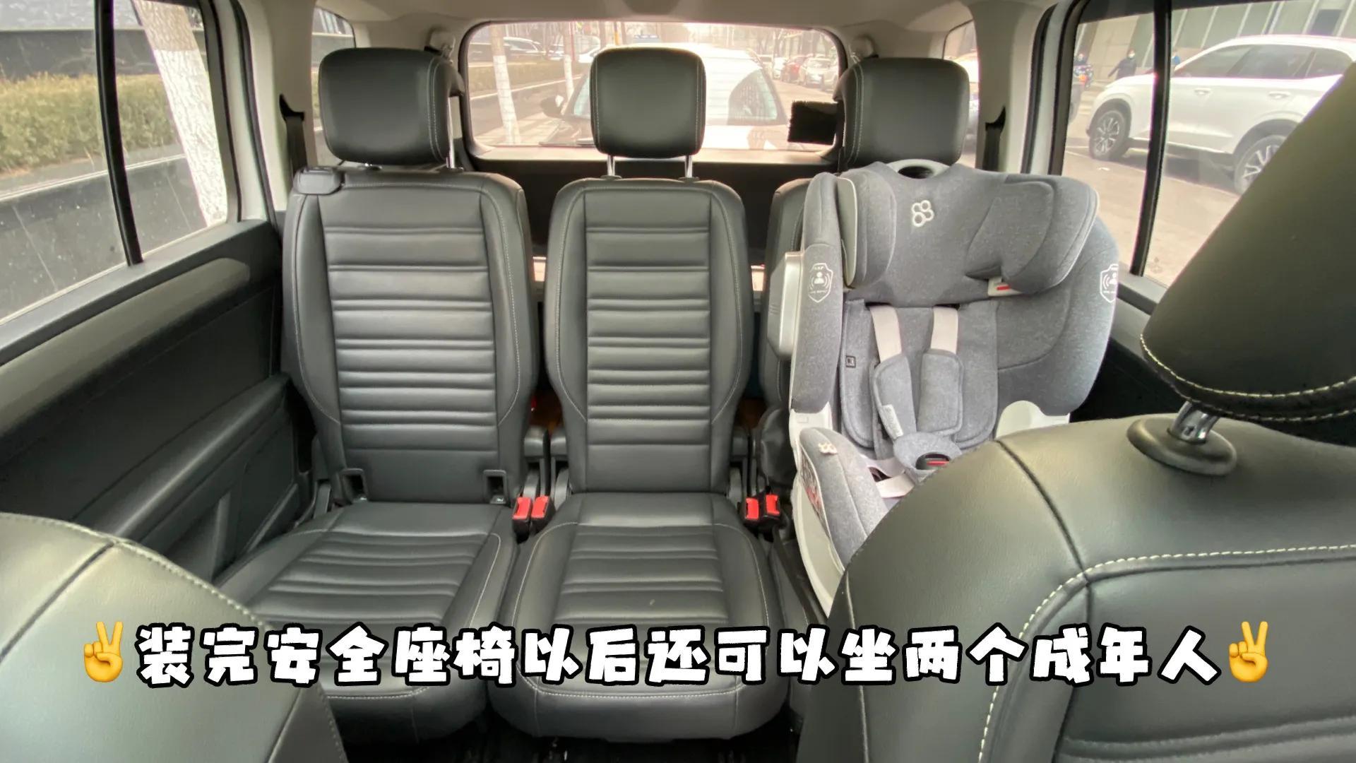最后一张图是我装完安全座椅的效果,还是我们以15万价位举例,轿车在安装安全座椅以后,后排只能坐一名成年人,但是途安可以挤下两个人,实用不实用,咱们图片见真章。
