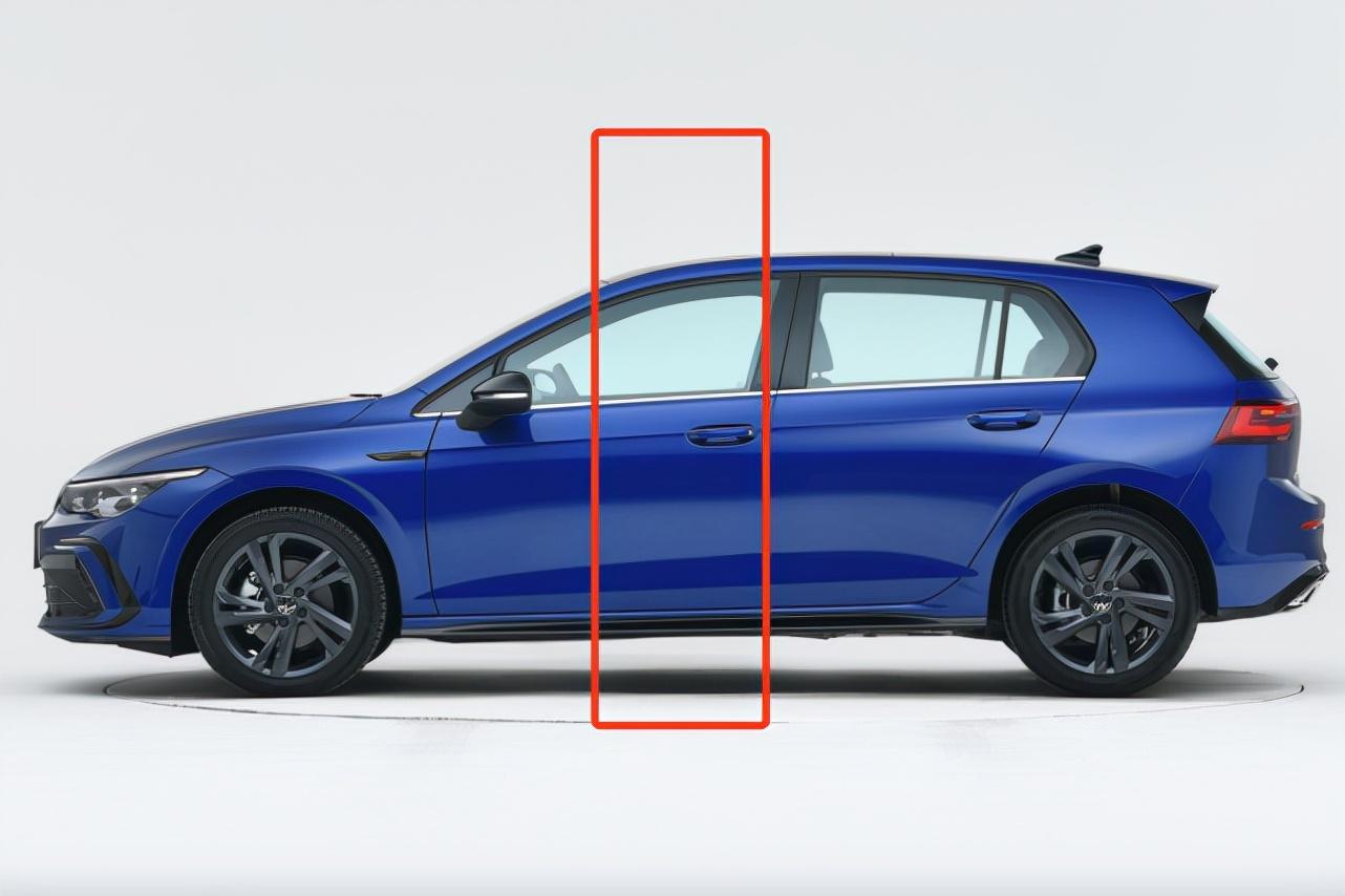 以下是我简单找到的高尔夫、思域两厢车侧面图,简单找了驾驶员的位置图,两款车型都有一个非常明显的特征,至少在视觉感受上可以清楚的看出来,在结构上驾驶员的位置是前后中心点。