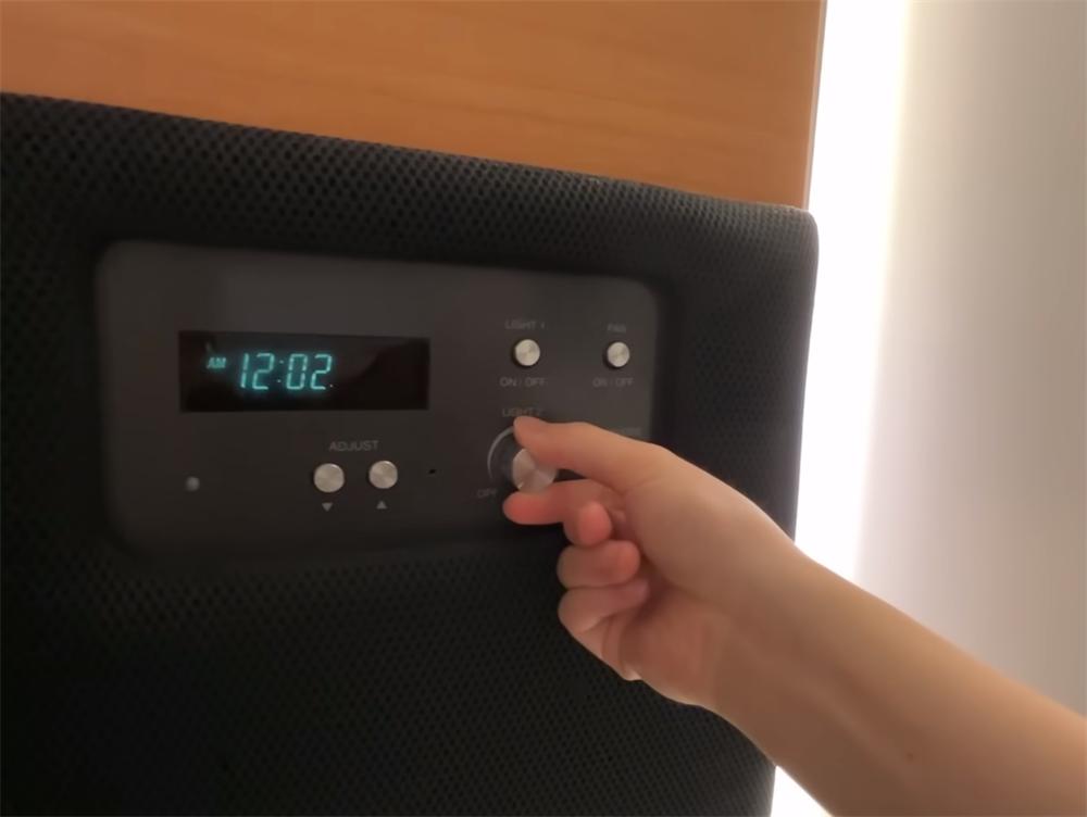 床头另一侧则是一体式的控制板,相当于是双控开关,不仅能显示时间、控制室内的灯光,也可以调节床头的阅读灯和氛围灯带,睡觉前就不用再起来去关灯啦,虽然也没几步路~
