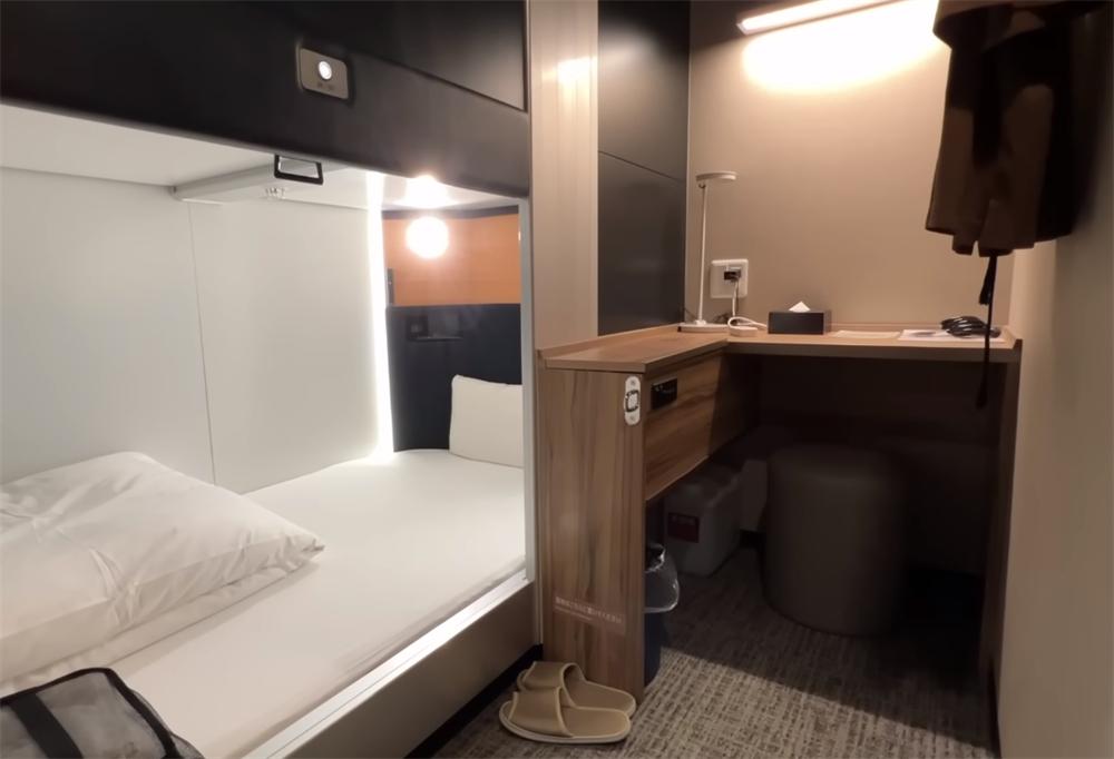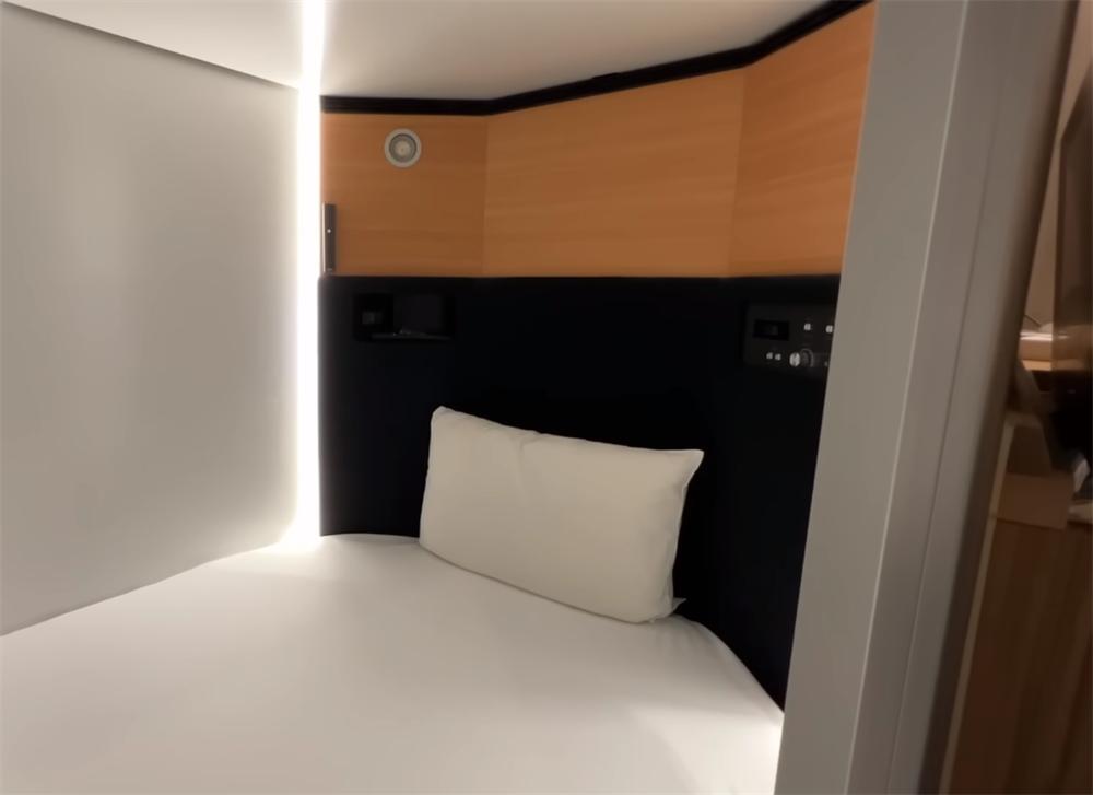 胶囊舱的“精髓”,可能就是这张位于隔间内的床铺了,它真的太小了!