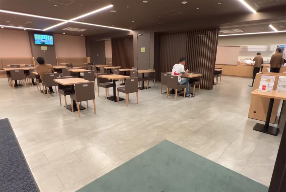 至于吃饭嘛,4㎡胶囊舱内自然没办法安装厨房,也是在一个跟美食广场一样的大食堂里用餐,但实际上环境还是挺不错的,起码看起来收拾得都很干净。