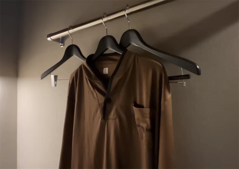 哦对了,书桌旁边的墙面空间也没有浪费,而是安装了墙面架当作衣架,可以说,小小的4㎡空间能利用起来的地方都利用了起来,尽量不去浪费。