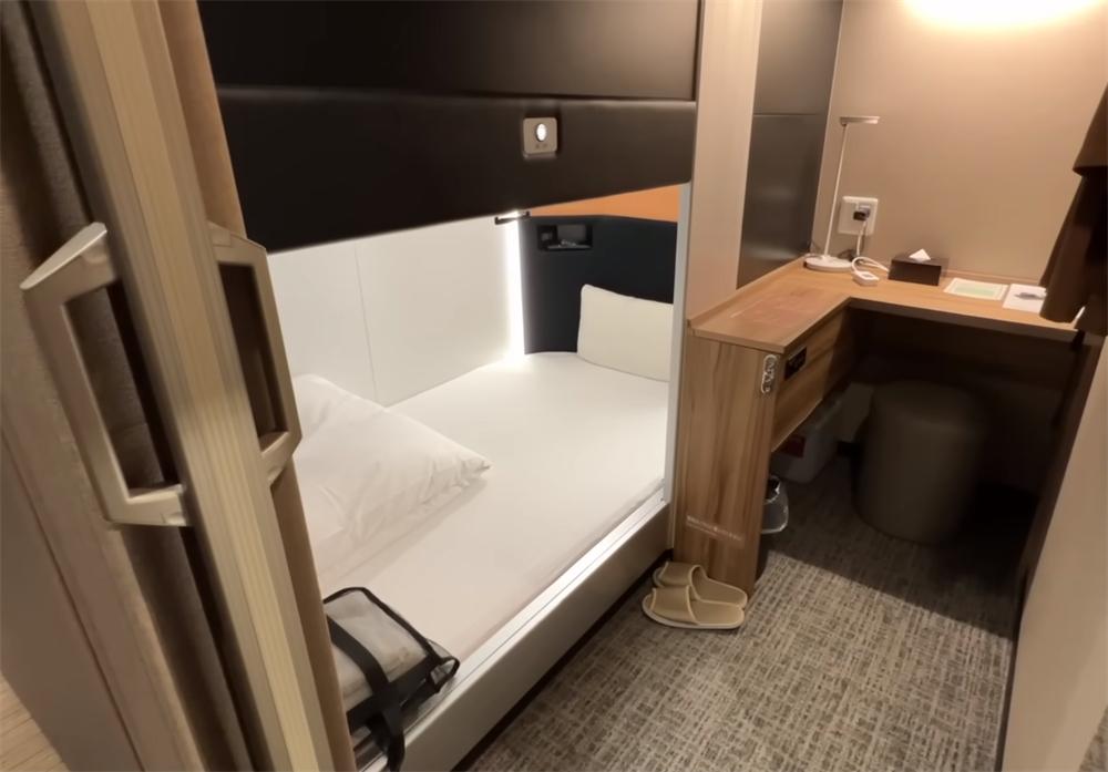 一位生活在日本的小哥,在前不久住进了一间“胶囊舱”旅店,它的面积仅有4㎡,全屋空间又小又逼仄,而这也是他第一次尝试住在这样的小房子里。
