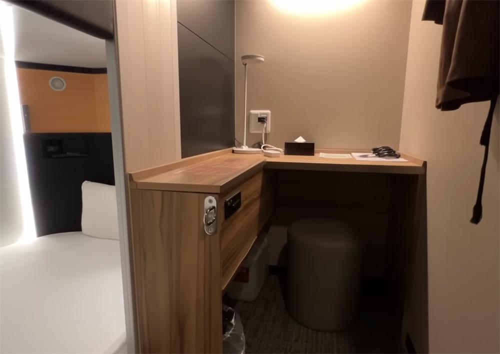 说起这间胶囊舱内的布置,虽然空间紧凑逼仄,但基本功能该有的都有。