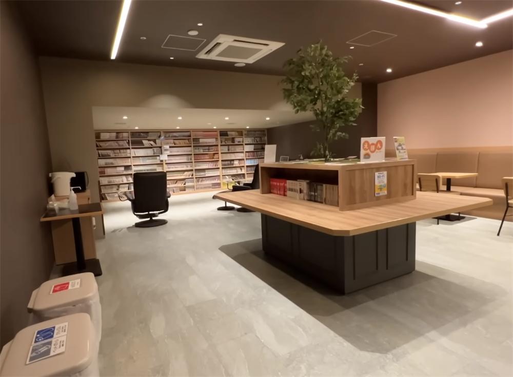 我个人感觉,这种胶囊旅店就像是一个小型的公寓社区,里面各种生活功能应有尽有,比如楼下的书店娱乐室,可以在这里借阅漫画,或坐在按摩椅上放松一下。