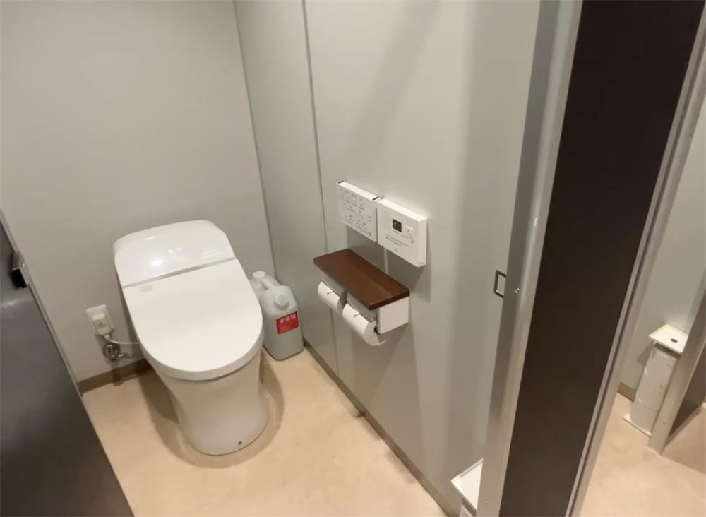 卫生间则是一个个的格子单间,每一个卫生间里都安装了智能马桶(貌似日本人家里大多都是这种),如厕的舒适性也可以得到保障。