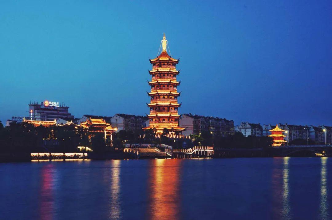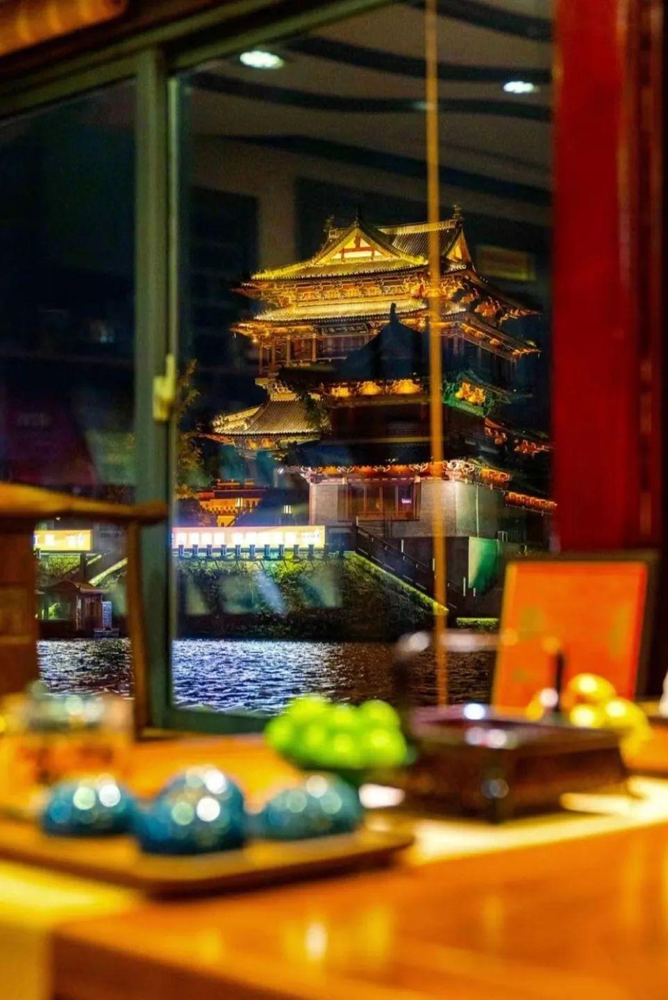 入夜后的凤城河,河岸边的望海楼与文峰塔亮起灯来,彼此相映成趣。