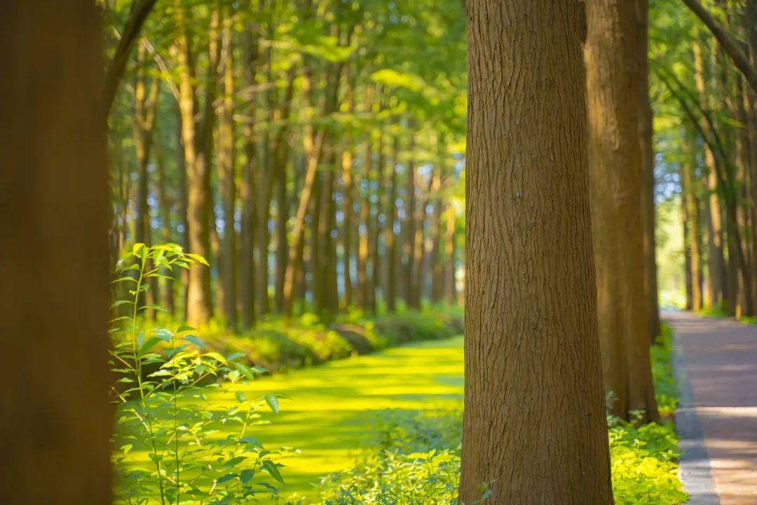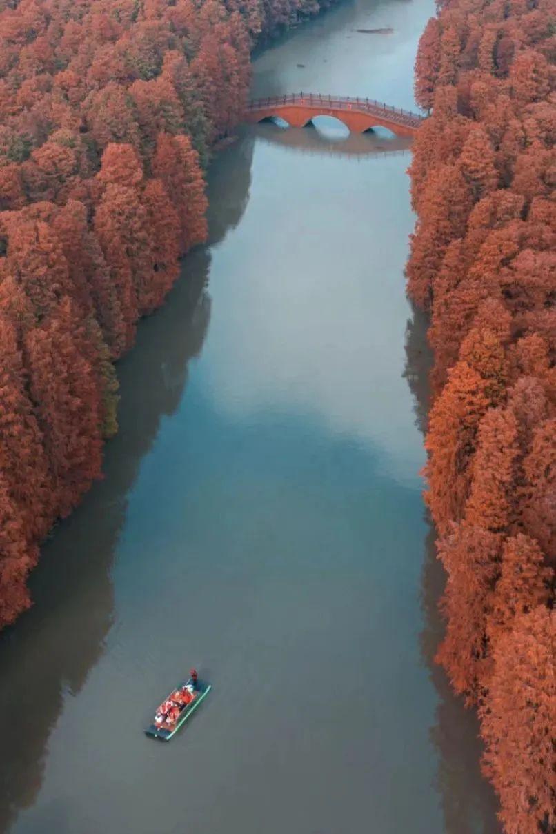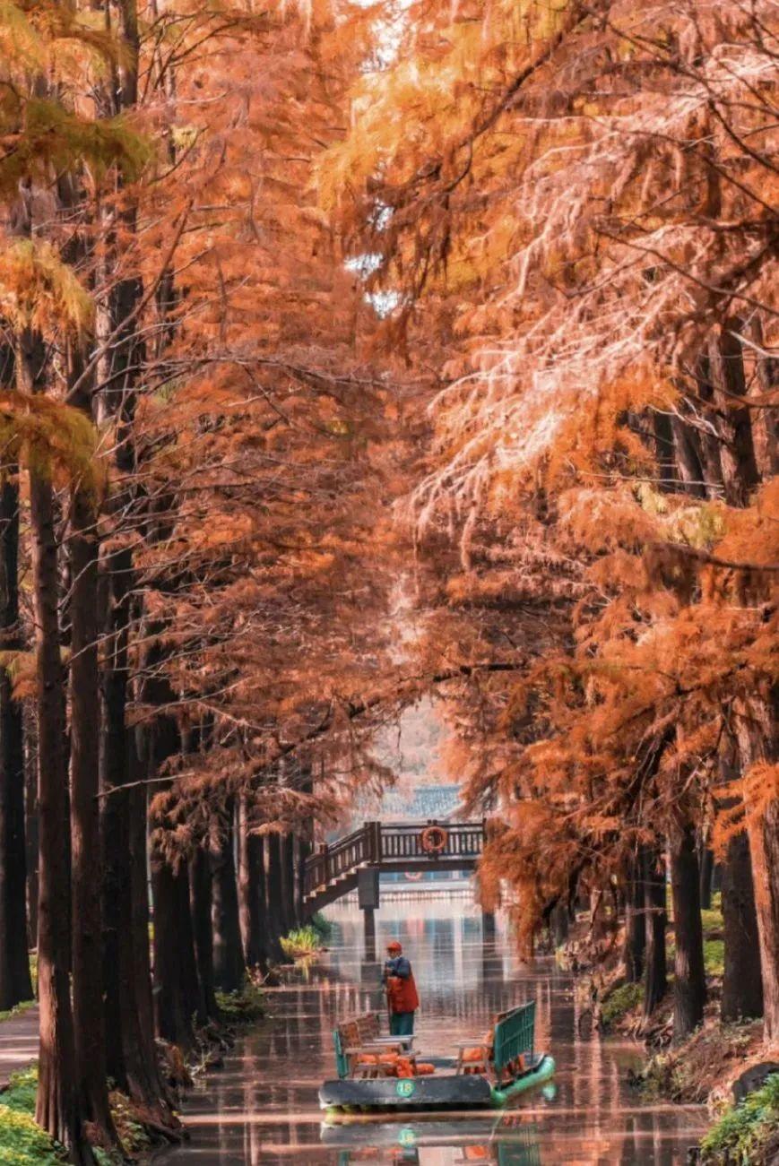 漫步林间,看遮天蔽日的水杉尽数变成红褐色,视觉上就会觉得温暖。
