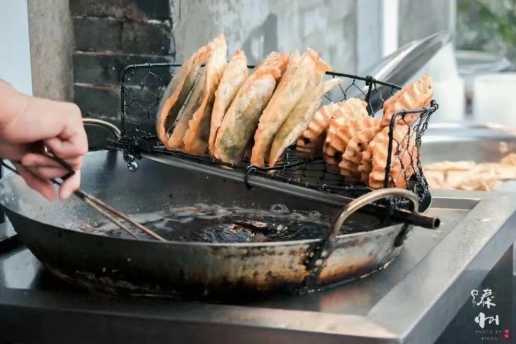 同时,这里也有那些当地人吃了许多年的老铺子,比如这家街口的炕面盒子。