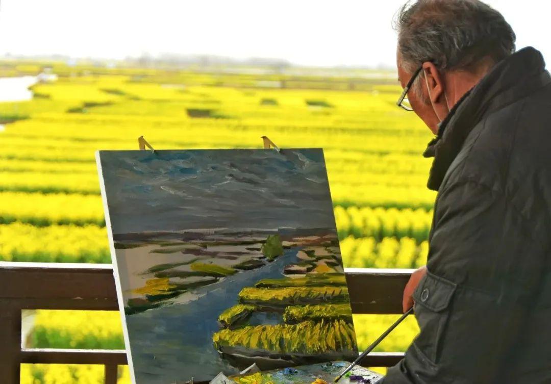 每年一到油菜花盛开的季节,兴化周边城市的老法师以及热爱绘画的人,就会不约而同地赶赴此地,他们要在第一时间,记录下眼前的景象。