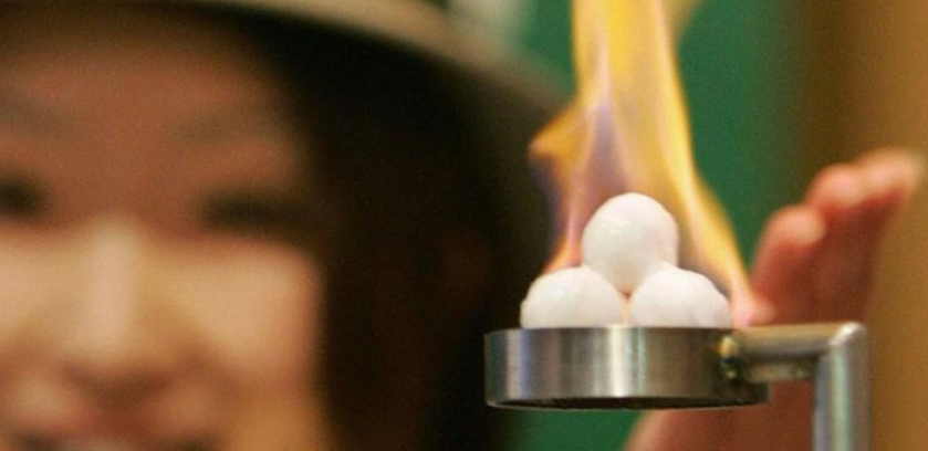 如果这些气体生成的地方不是湖面而是拥有较低温度和较高压力的地方,例如深海的海底或者冻土长存的高原地区,那么这些气体就会被冻结的水分子“困住”,形成一块可点燃的冰。