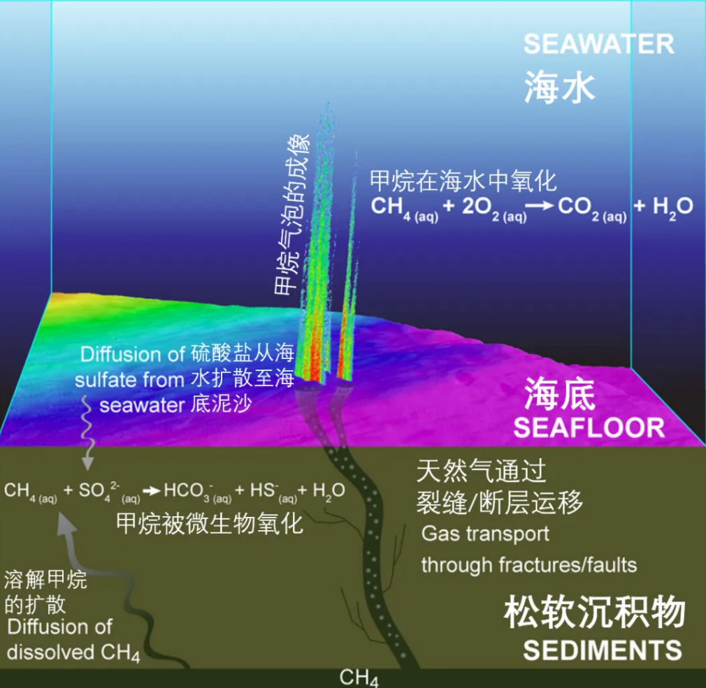 缺氧也是一个重要问题,分解出的甲烷会与水中的氧气发生化学反应,转变为二氧化碳和水,使得海洋氧气含量降低,大气二氧化碳含量增加。