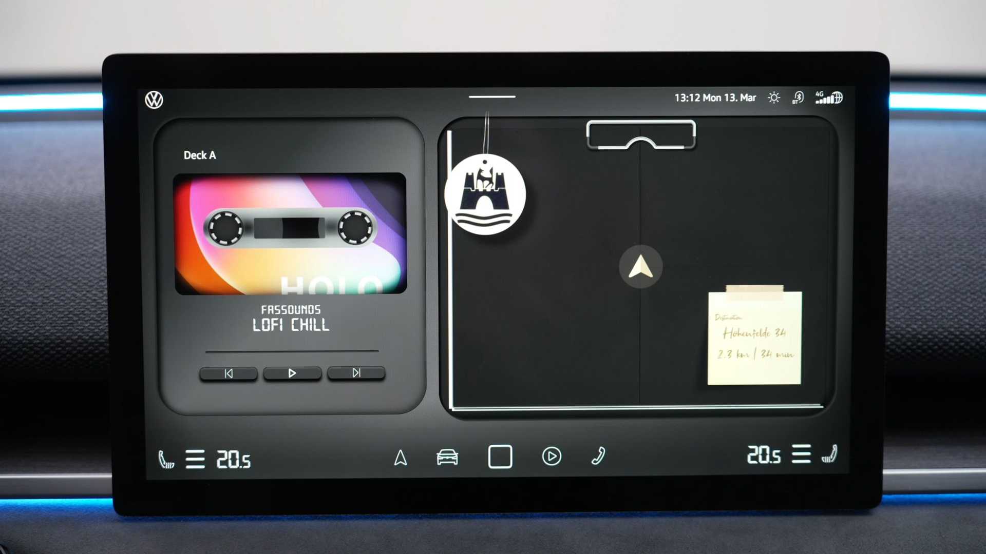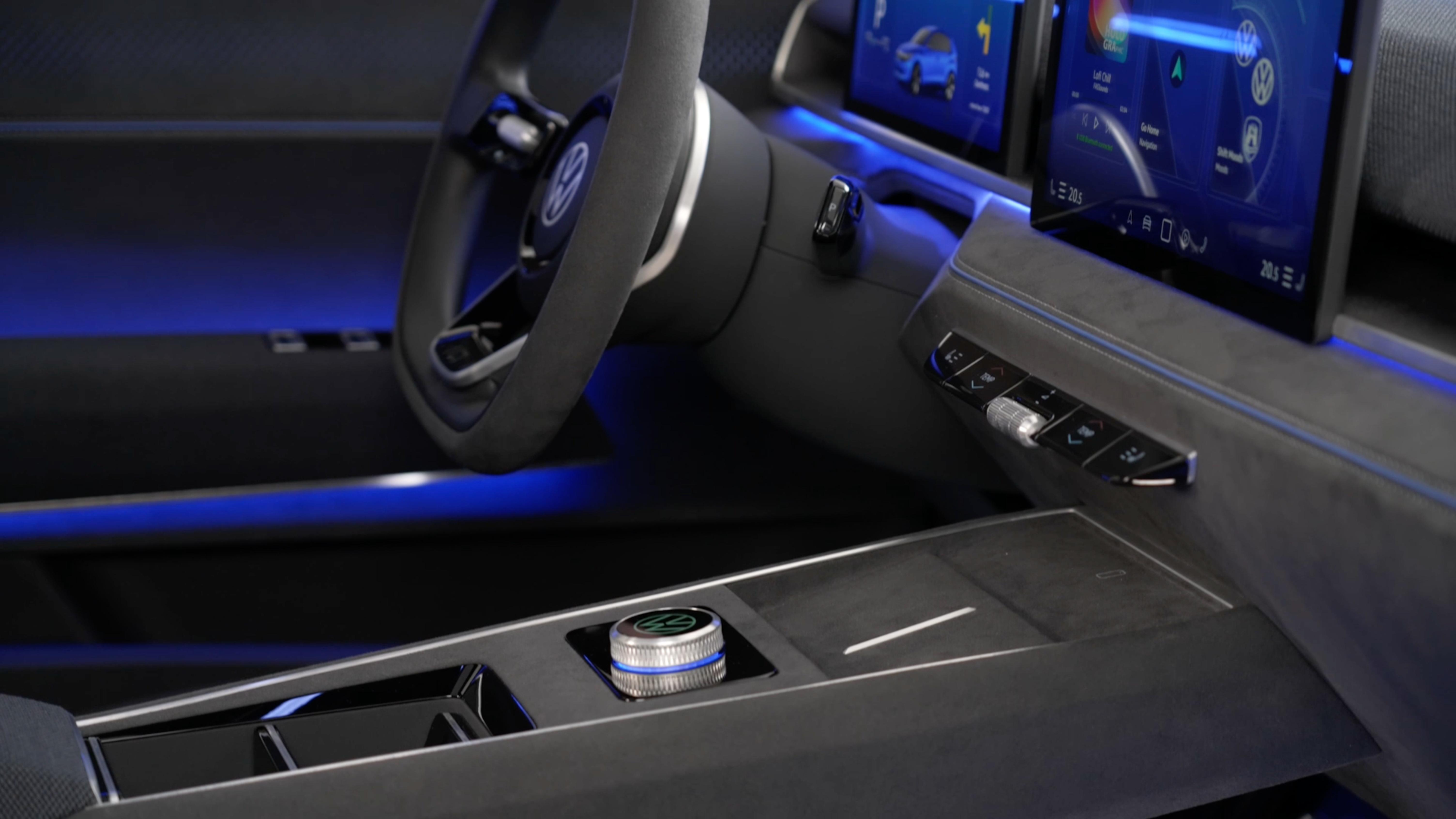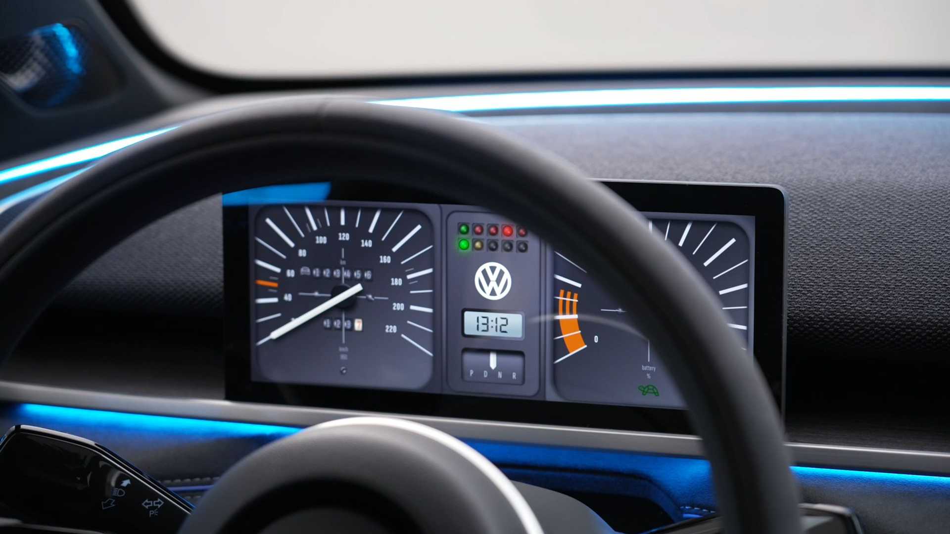 对于科技属性,大众ID.2自然也是全面升级,首先悬浮式仪表盘从ID祖传的5.3英寸升级到了边框更窄的10.9英寸全液晶仪表;而一旁的中央显示屏也达到12.9英寸,并内嵌新一代座舱系统,并与安卓平板一样支持多种显示主题(其中就包括来自1970年的甲壳虫复古收音机等主题)。
