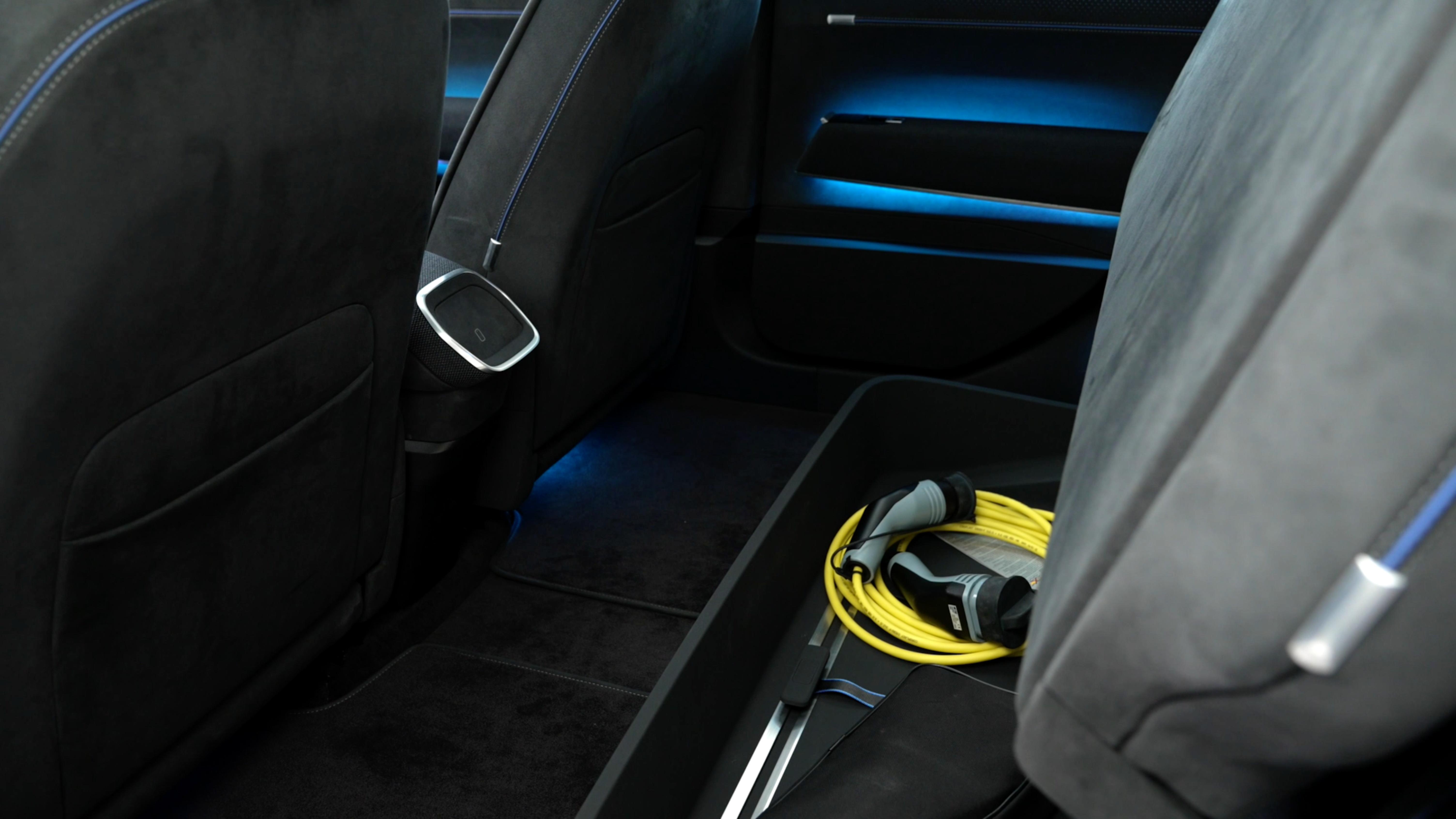 更值得高兴的是,方向盘终于不再是万恶的全触摸设计,而是使用体验拉满的物理滚轮(当然换挡依旧是怀挡);同时快捷功能面板也进行了调整,配有独立音响旋钮、座椅加热/按摩按钮和两个自定义按键。
