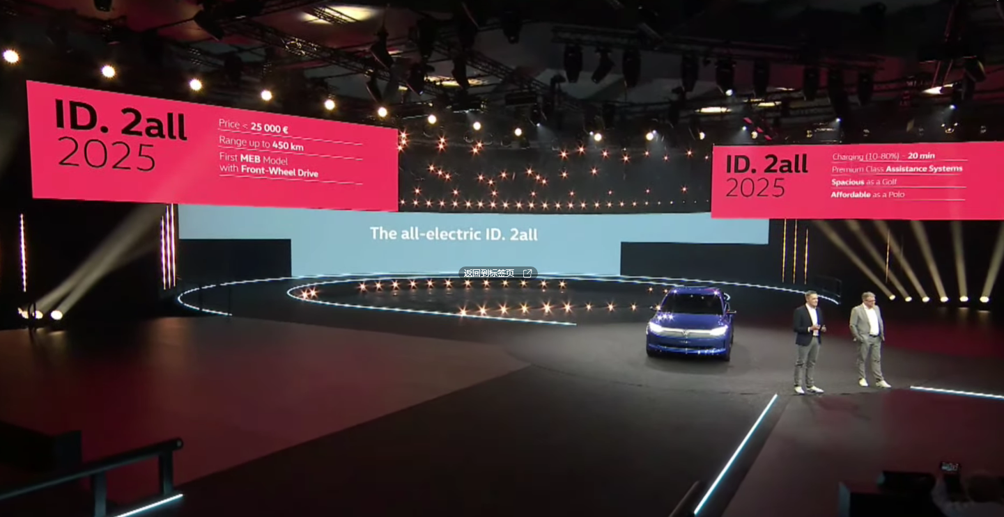 不过就在3月16日,大众正式推出了旗下更亲民纯电全新车型 大众ID.2 all概念车(也就是未来的ID.2),量产版于2025年全面上市,海外售价将低于2.5万欧元(约合人民币18.21万元),从而抗衡同样即将发布的特斯拉Model Q和一众国内新势力选手。