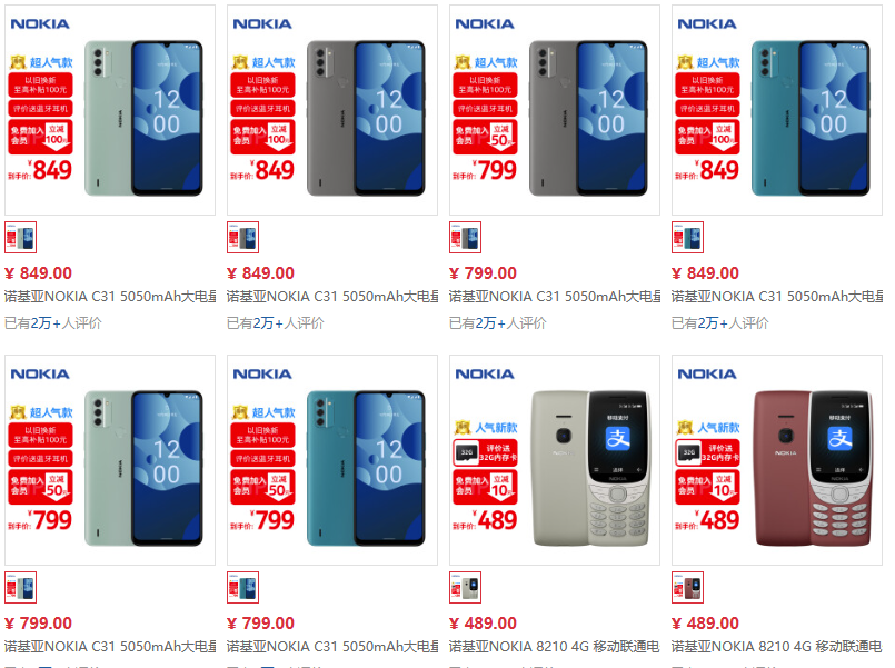 打开诺基亚国行旗舰店,一眼望过去都找不到半台高于 1000 元的手机。