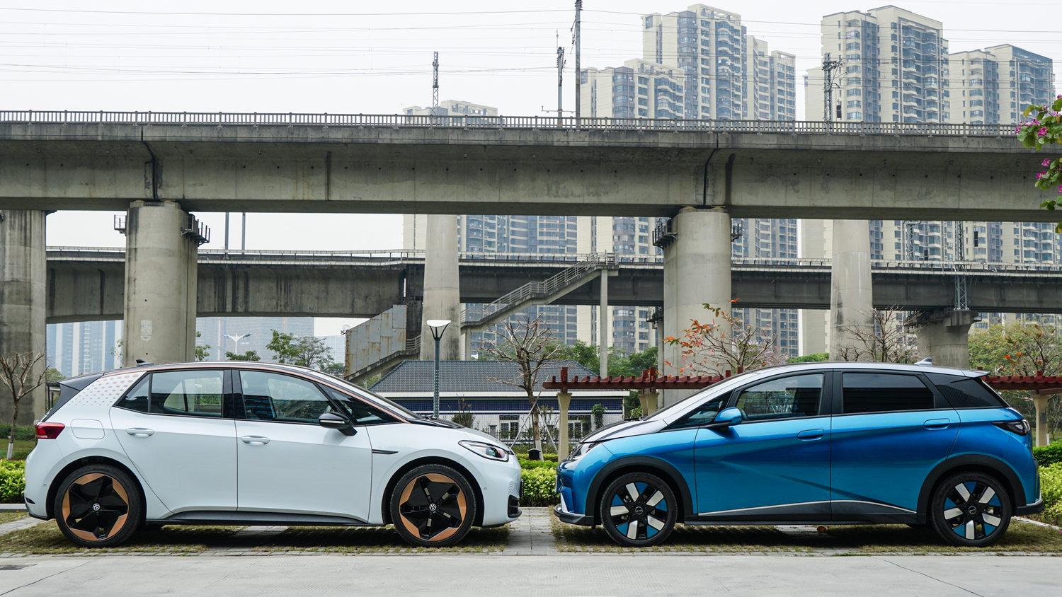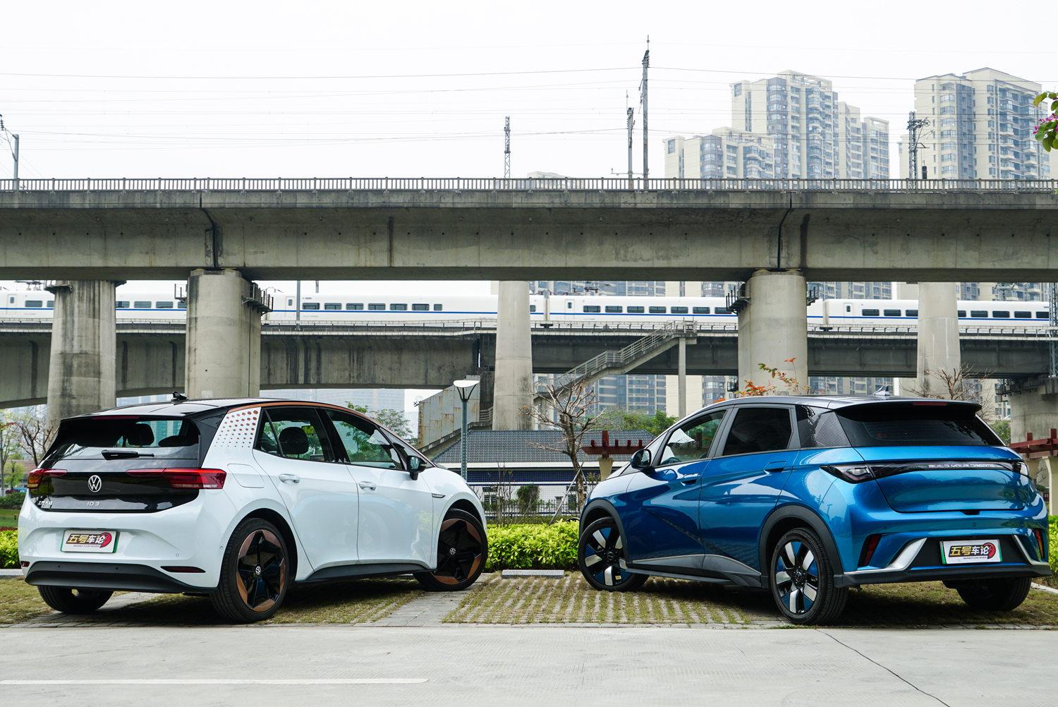 拿到的试驾车为上汽大众ID.3 2023款极智版(以下简称ID.3),指导价19.19万元;以及比亚迪海豚2021款骑士版(以下简称海豚),指导价13.08万元。要留意的是,2023款海豚骑士版售价为13.68万元,增加一些配置,但总体没有太大改变。