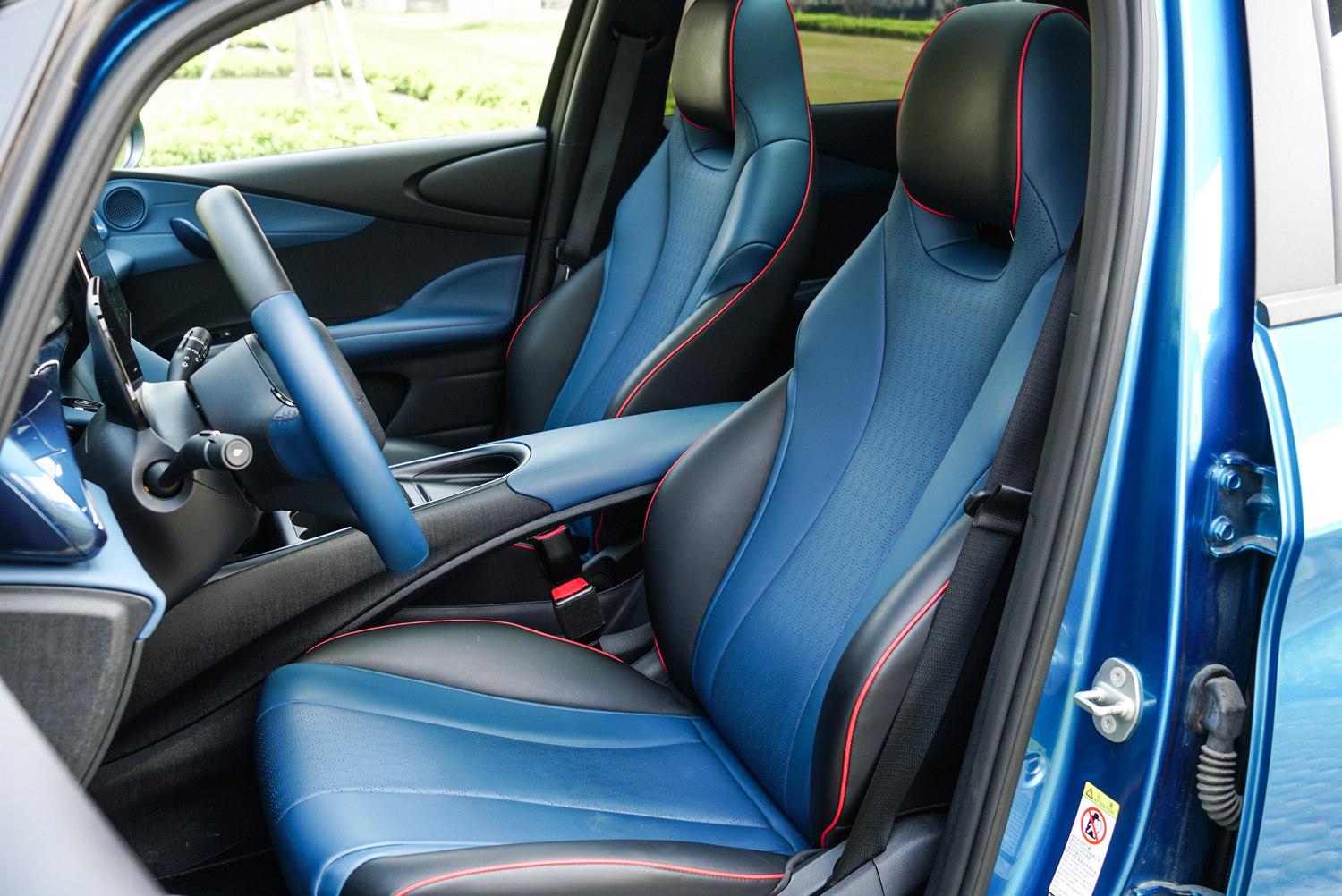 20英寸双色轮毂采用低风阻设计理念,搭配韩泰ventus系列电车专用轮胎,尺寸为215/45R20,这个级别的小车搭配大轮毂实属少见,可提高车辆的行驶稳定性。但胎壁明显比海豚更薄,会影响行驶品质吗?后面会揭晓。