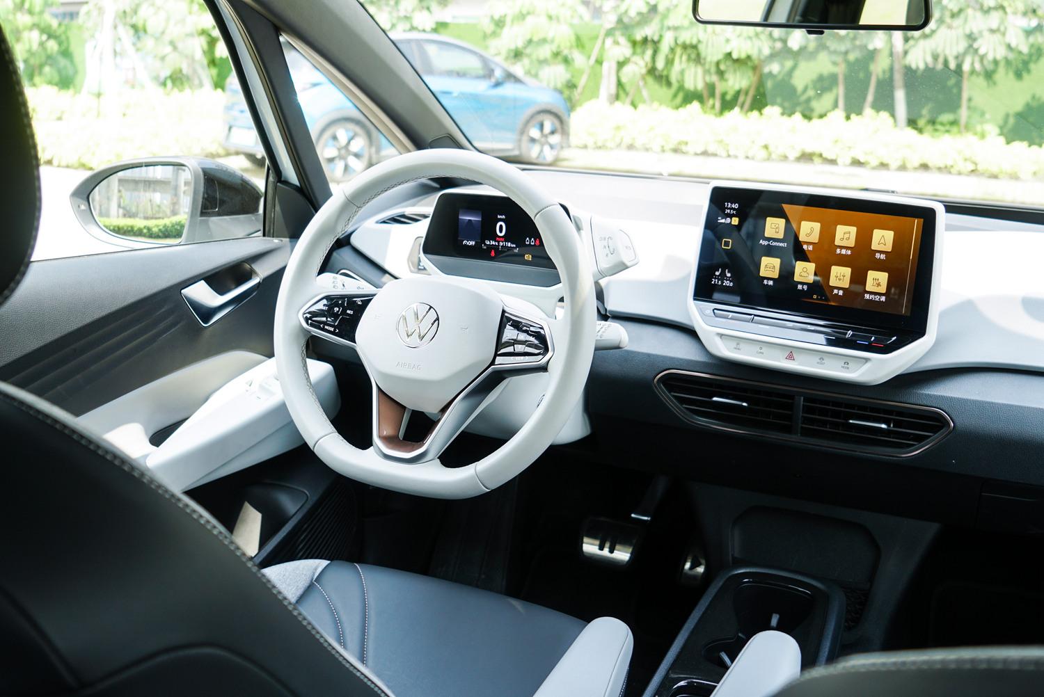 来到车内部分,让我满意的是两台车都延续了各自的外观风格,做到里外呼应。ID.3提供多种内饰配色可选,而试驾车为素雅简约的黑白配,置身其中,整个人的精神状态都会变得舒缓。