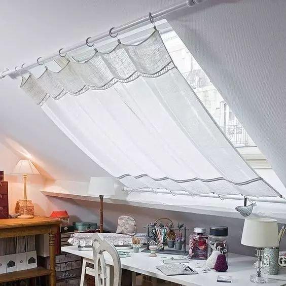 利用撑杆“拦腰斩断”,就可以解决窗帘与不规则窗户之间的不协调哦!
